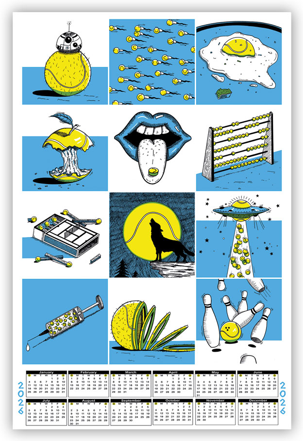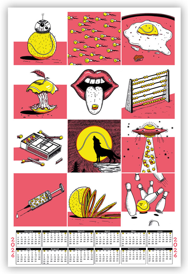 Tags 2026, apple, austria, ball, band, barcelona, calendar, classic, clean, club, clubculture, color, concert, culture, doping, drugs, feelings, fruit, fun, funny, genre, illustration, injection, limited, limiteedition, lips, match, moon, objects, pill, pop, save, screenprint screenprint till death, serigrafia, siebdruck, slice, sperm, sport, tennis, tennisball, the bicycle press, thoughts, ufo, vintage, wolf, zellerluoid